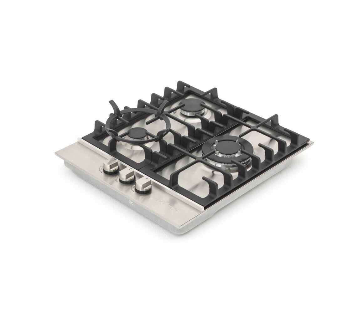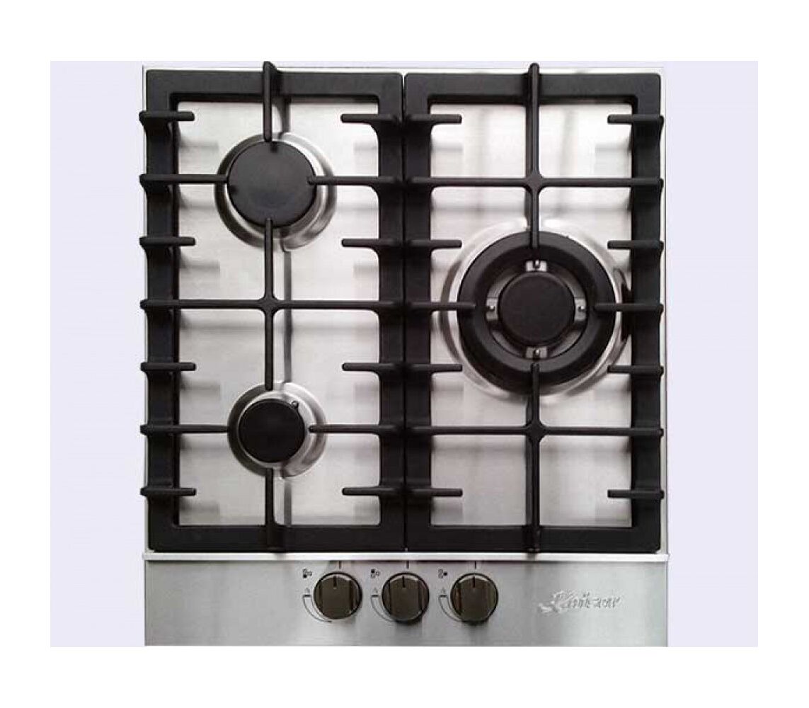 | Описание конфорок | 1 х Ø 4,0 см малая горелка (1,0 кВт) 1 х Ø 6,5 см нормальная горелка (1,75 кВт) 1 х Ø 13,0 см тройная турбо горелка (3,8 кВт) |