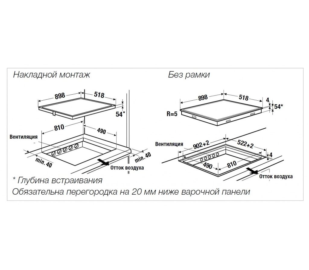 - Размеры ниши для встраивания (ШхГ): 810х490 мм