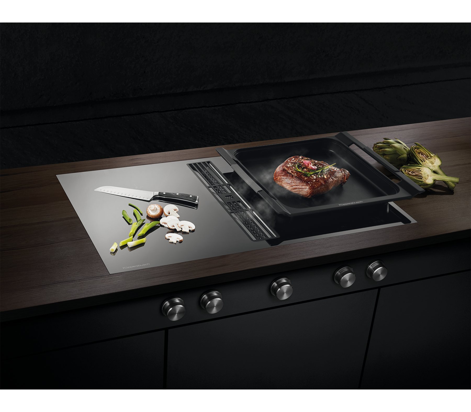 Индукционная варочная панель с вытяжкой Kuppersbusch KMI 9850.0 SR Copper