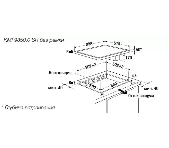 Индукционная варочная панель с вытяжкой Kuppersbusch KMI 9850.0 SR Silver Chrome