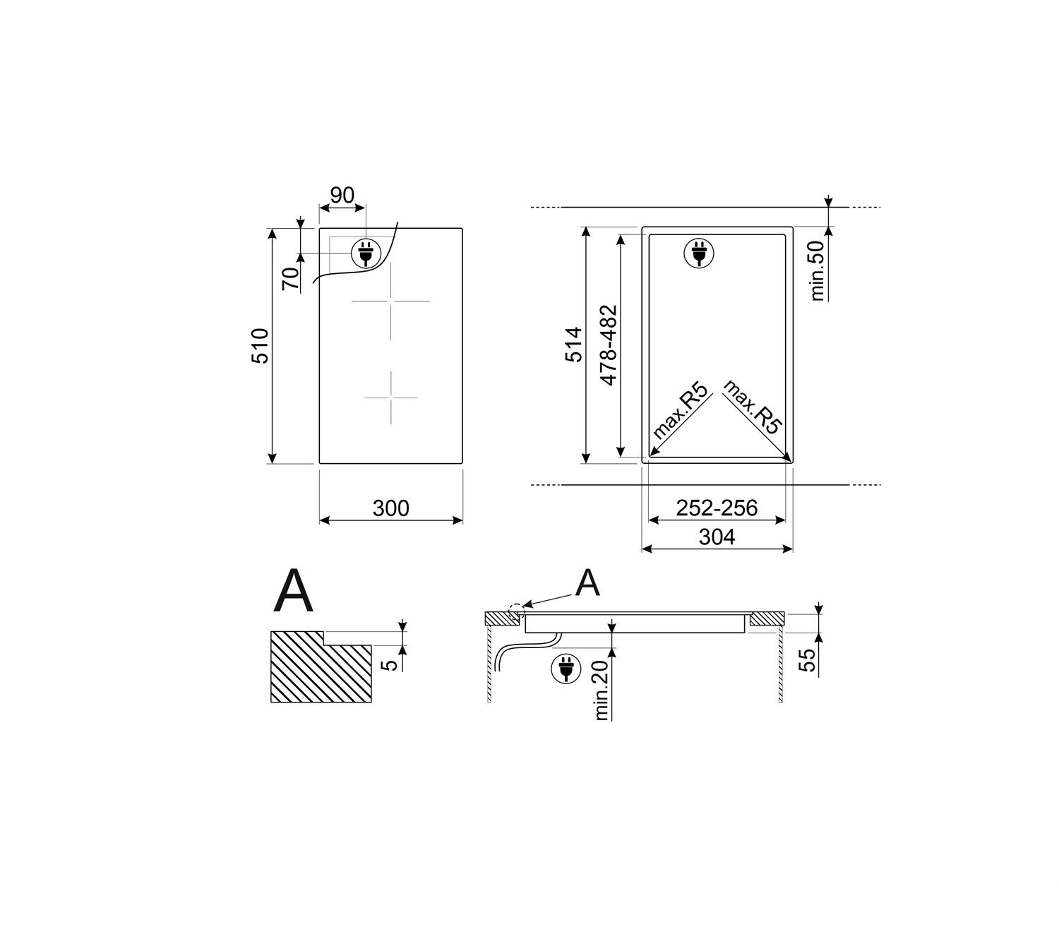 Габариты ниши для встраивания: -x25.2-25.6x47.8-48.2 см