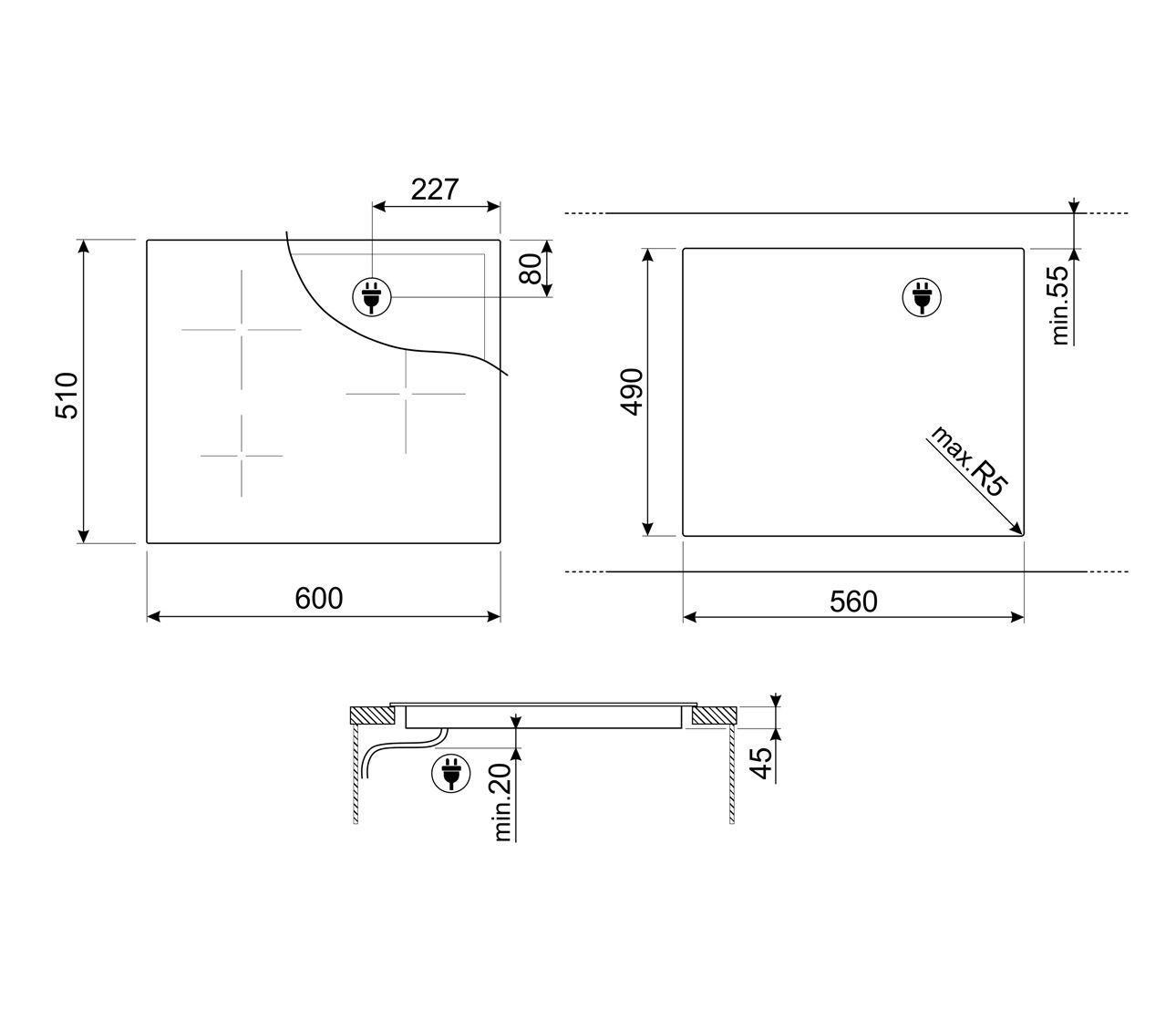 - Размеры ниши для встраивания (ШхГ): 560х490 мм