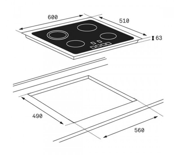 | Конфорки | 1 конфорка high light Ø 210/180 мм, 1 конфорка high light Ø 180 мм, 2 конфорки high light Ø 145 мм |