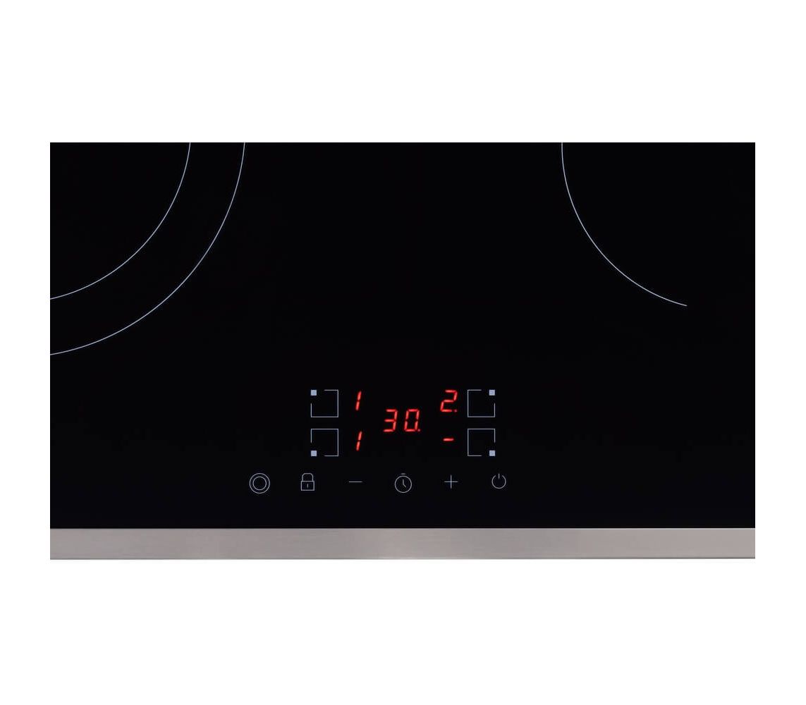 Встраиваемая стеклокерамическая электрическая варочная панель черного цвета и рамкой из нержавеющей стали станет стильным и практичным решением для вашей кухни.