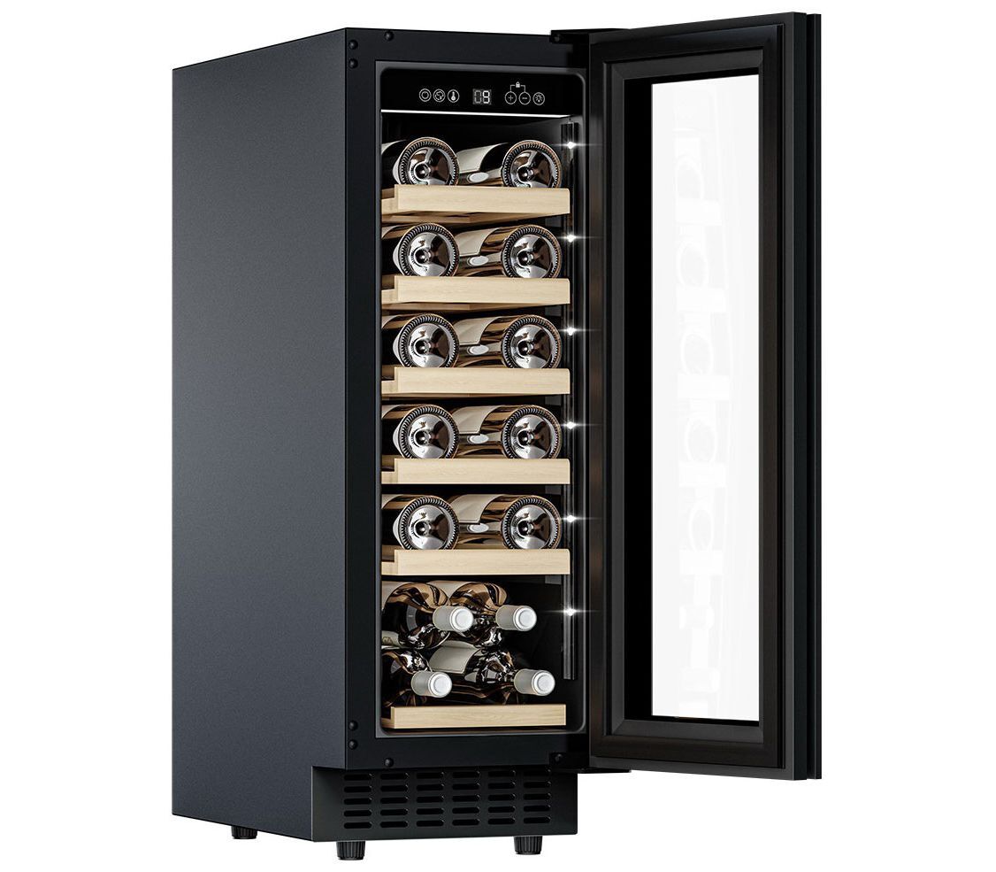 Компрессорный винный шкаф Meyvel MV19NH-KBT1 обладает оптимальной вместимостью и даёт возможность разместить до 19 бутылок стандартного типа Бордо (0,75 л). Располагаются они на выдвижных полках из дерева. Внутреннее пространство шкафа поддерживает комфортную для вина температуру от +5°C до +20°C. Так же, эта модель поддерживает влажность в диапазоне 60-80%, как в настоящем винном погребе.