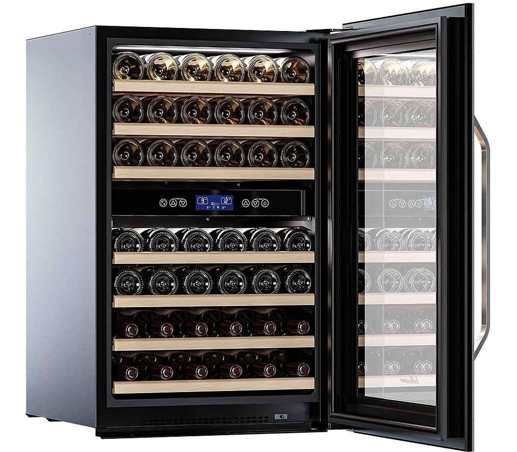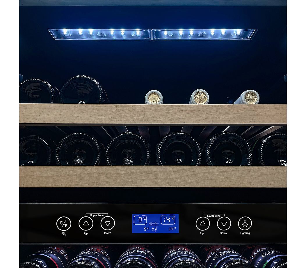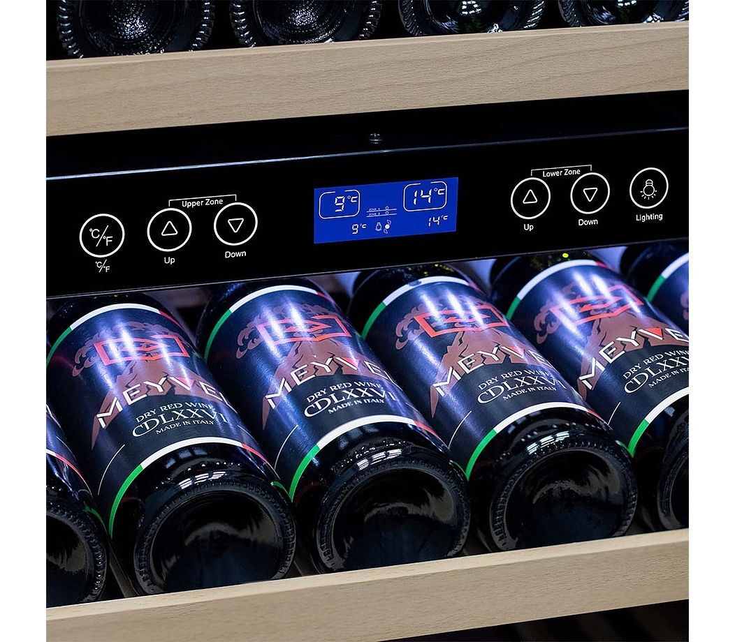 Винный шкаф MEYVEL MV42-KSB2 предназначен для демонстрации, хранения и создания оптимальных условий для сохранения всех вкусовых свойств вина в бутылках на предприятиях общественного питания, торговли, в барах, ресторанах, специализированных магазинах, частных домах или квартирах. Модель оснащена сенсорной панелью управления, 2 электронными термостатами и внутренней светодиодной подсветкой. Корпус выполнен из окрашенной в черный цвет стали, дверь - из двойного стекла с УФ защитой со стальной рамкой, полки - из массива бука.