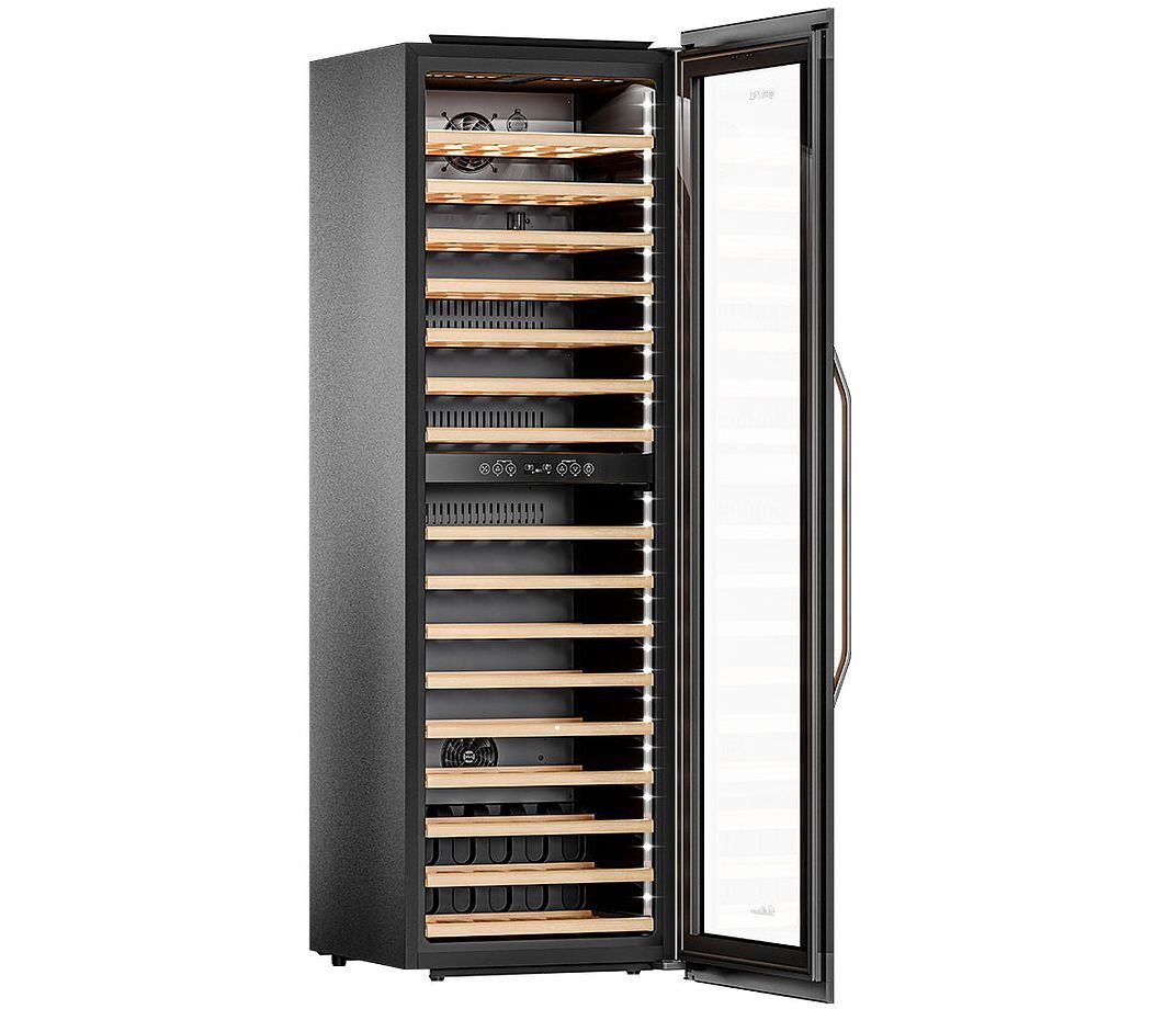 Компрессорный винный шкаф Meyvel MV83-KBB2 обладает большой вместимостью и способен разместить до 83 бутылок. Располагаются они на полках из массива бука. Внутреннее пространство шкафа разделено на 3 температурные зоны с возможностью настраивать каждую из них. Общий температурный диапазон от +5°C до +18°C. Холодильник поддерживает влажность в диапазоне 60-80%, как в настоящем винном погребе.